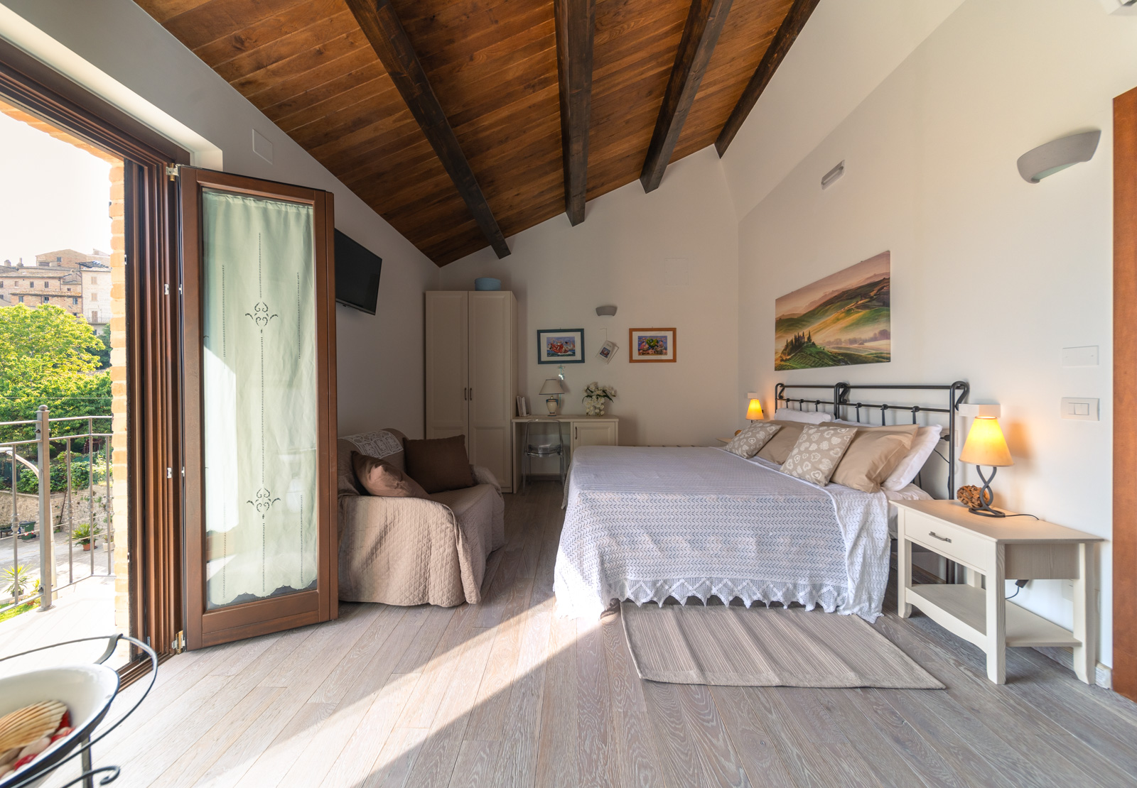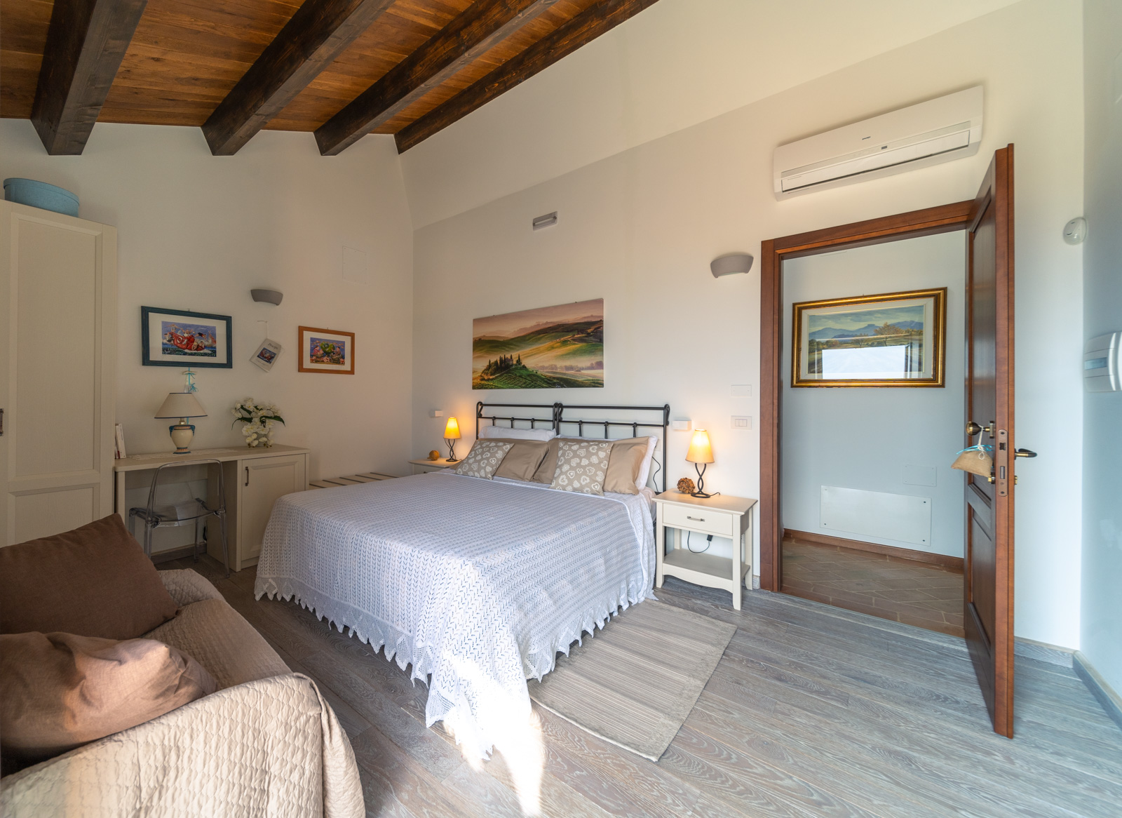 La nostra Camera Doppia Standard è composta da un letto matrimoniale (o due letti singoli), un armadio, una scrivania con sedia, una poltroncina e un comodo mobile porta-valigia. Le sue dimensioni consentono di poter aggiungere un terzo letto per adulti o adolescenti. Siamo inoltre in grado di offrirvi culle per i vostri bambini più piccoli. Sempre inclusa la colazione e l’uso del solarium, della piscina, del barbecue e della cucina.